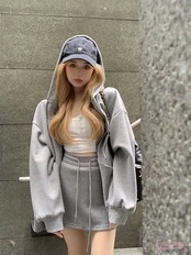 上下別売り 普段使い 長袖シャツ トップス ミニスカート丈長めルーズ レディース かわいい シルエット 2点セット フード付き風 きれいめ サイズ 秋冬 ゆったり ファッションダ ブル 大人 可愛い