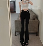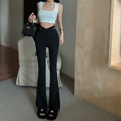 2024 春秋 パンツ モップパンツ ロングパンツ ワイド ハイウエスト 脚長効果 美脚効果 細見え 夏 カジュアルフィット かわいい 韓国系ファッションサイド レディース お出かけ