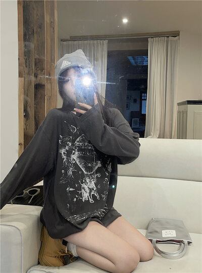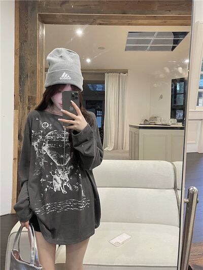 2024 秋冬tシャツ 長袖 ドロップショルダー クルーネック トップス ルーズ レトロ衣装シルエット 韓国系 ファッションサイズ レディース 大人可愛い