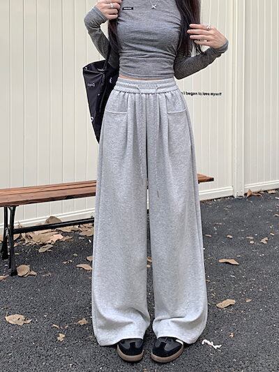2024 秋 パンツ ロング丈 ハイウエスト ズボン 美脚効果 脚長効果 細見えサイド 冬 春 おしゃれ かわいい 韓国系ファッション レディース お出かけ トラック