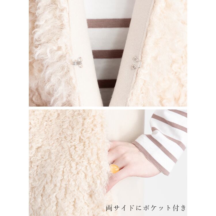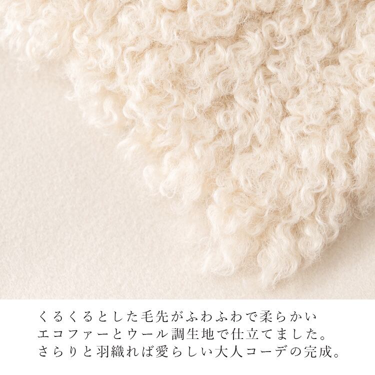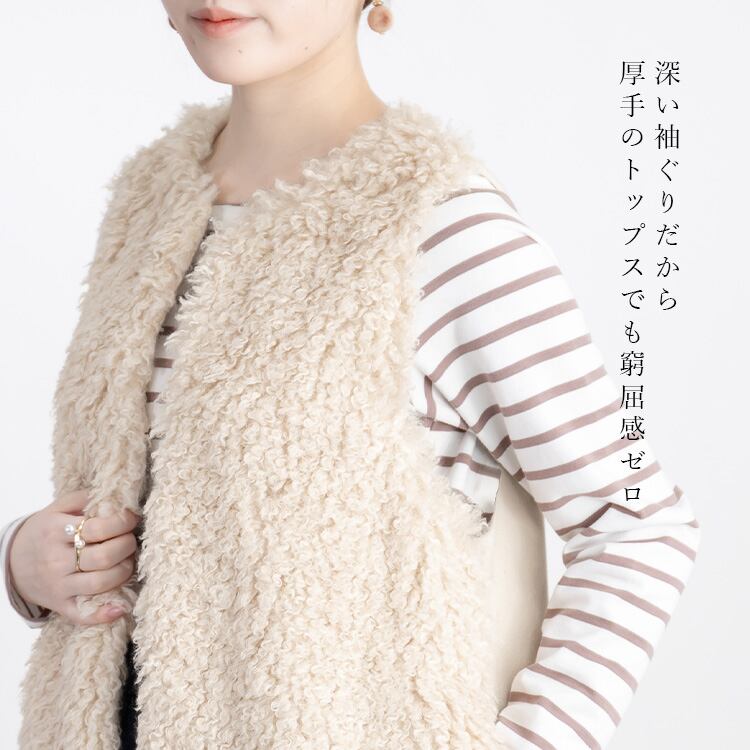 エコプードルファー×ウール調ベスト ベスト ジレ 羽織 ノーカラー ファーベスト ウール調