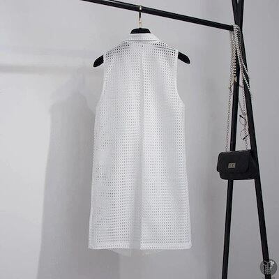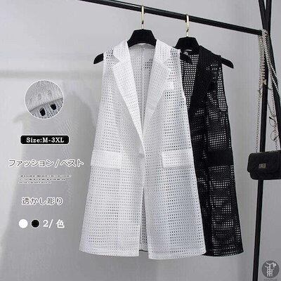 ベストロングベストメッシュ夏涼しいノースリーブコート透け感トップス袖なしフォーマルコーディネートスーツベストレディース