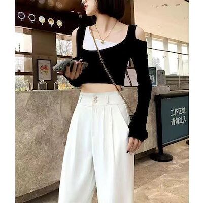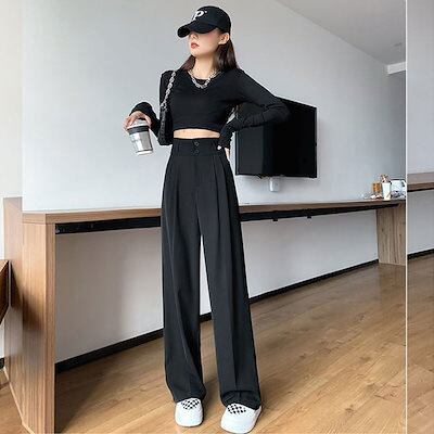 新作 夏の スーツジ ワイドパンツ 日韓 スリム見え 薄手 ハイウエスト レディース スーツジ ワイドパンツ高級感 ストレート オールマッチスラックスひんやりボトムス
