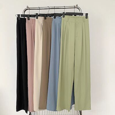 日韓 薄手 ハイウエスト レディース スーツジ ワイドパンツ高級感 ストレート オールマッチスラックス