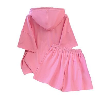 女性の新しいカジュアルなスポーツスーツのフード付き半袖ショートパンツ2点セット