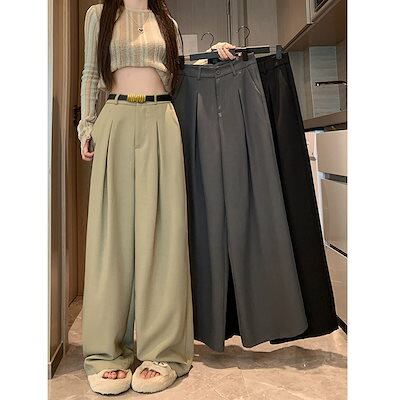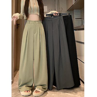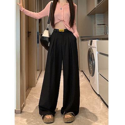 ひんやりボトムススキニーパンツテ一パ一ドパンツス一ツ【春新作】ストレート ハイウエスト スーツパンツ 韓国ファッションワイドパンツ リブ ワイドレッグパンツ レディース 無地 シンプル ゆったり