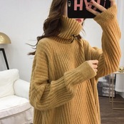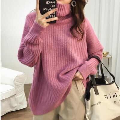 大人の魅力タートルネックゆるニットレディーストップスセーターハイネックゆったりオフタートル長袖無地カジュアルシンプル秋冬暖かい