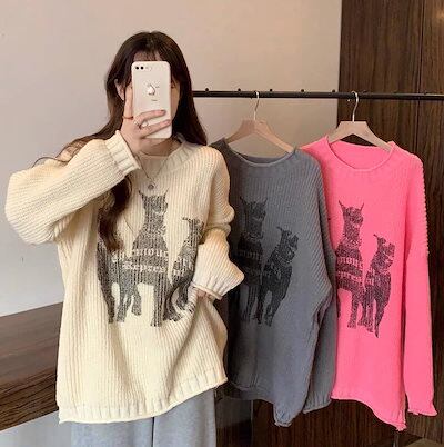ニット レディース 畦編み リブニット セーター ロゴ トップス プルオーバー トップス 長袖 おしゃれ カジュアル 大きサイズ ゆったり 春 秋 冬 M L 2L 3L 4L 5L