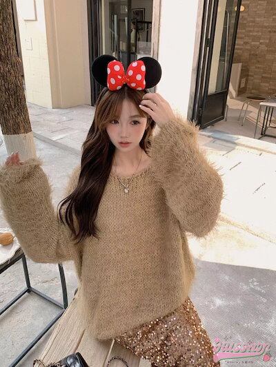 2024 春夏トップス セーター ラウンドネック ゆったり 大きめサイズ オーバーサイズ オフショルダー 長袖 秋冬 茶色 単色 韓国ファッション レディース おしゃれ かわいい カジュアル お出かけ