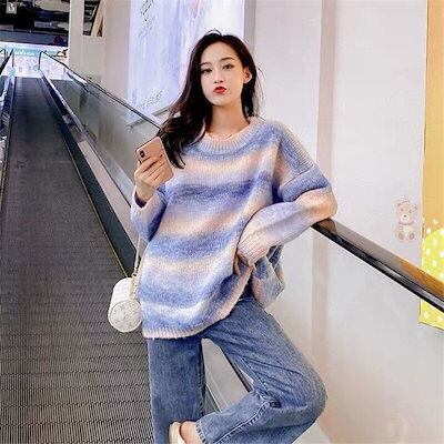 ベーシックニット ラウンドネックニット ラブリータートルネック ベーシックニット レインボーストライプ セーター かわいい ニット トップス