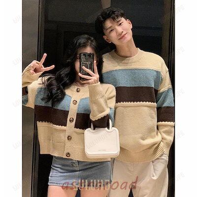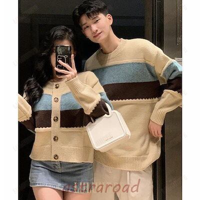 カーディガン セーター ペアルック メンズ レディース プレゼント クリスマス ニット ベージュ 秋 カップル 恋人 親友 友達 姉妹 可愛い 暖かい トップス 冬
