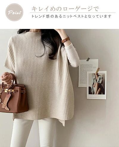 秋服 ニットベスト レディース ローゲージ 体型カバー レイヤード スタイルアップ効果 カジュアル 大人 デイリー