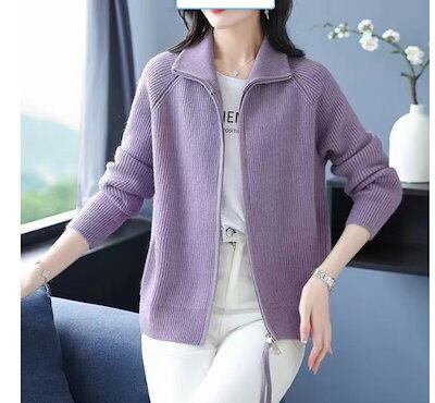 開襟セーターコート 厚手 秋服 2024新型 秋冬 レディース ファスナーアウタートップス洋風 ニットカーディガン ベーシックニット
