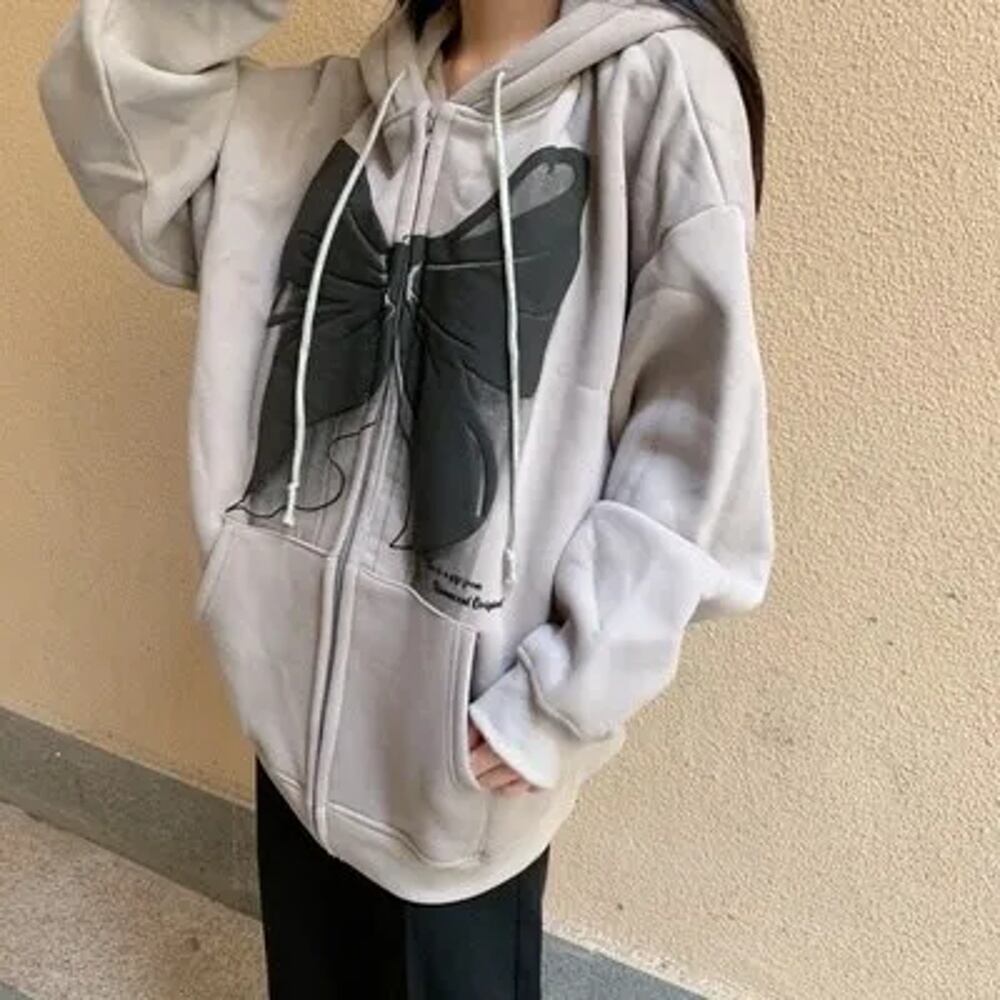 女性用長袖スウェットシャツ,特大フード付きスウェットシャツ,ジッパー式,原宿スタイル,ソリッド,グレー,ヴィンテージの服,カワイイ,y2k パーカー ジャージ y2k T240908165440_01