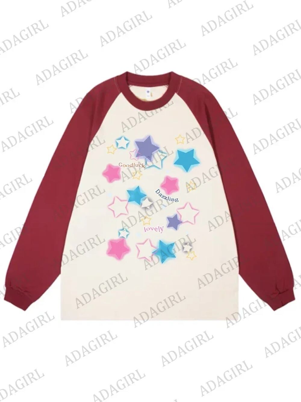 Adagirl-女性のための特大の星のグラフィックパーカー、美的lanスリーブのスウェットシャツ、原宿トップス、カワイイ服、y2k、e-girl、カワイイ パーカー ジャージ y2k T240908165736_01