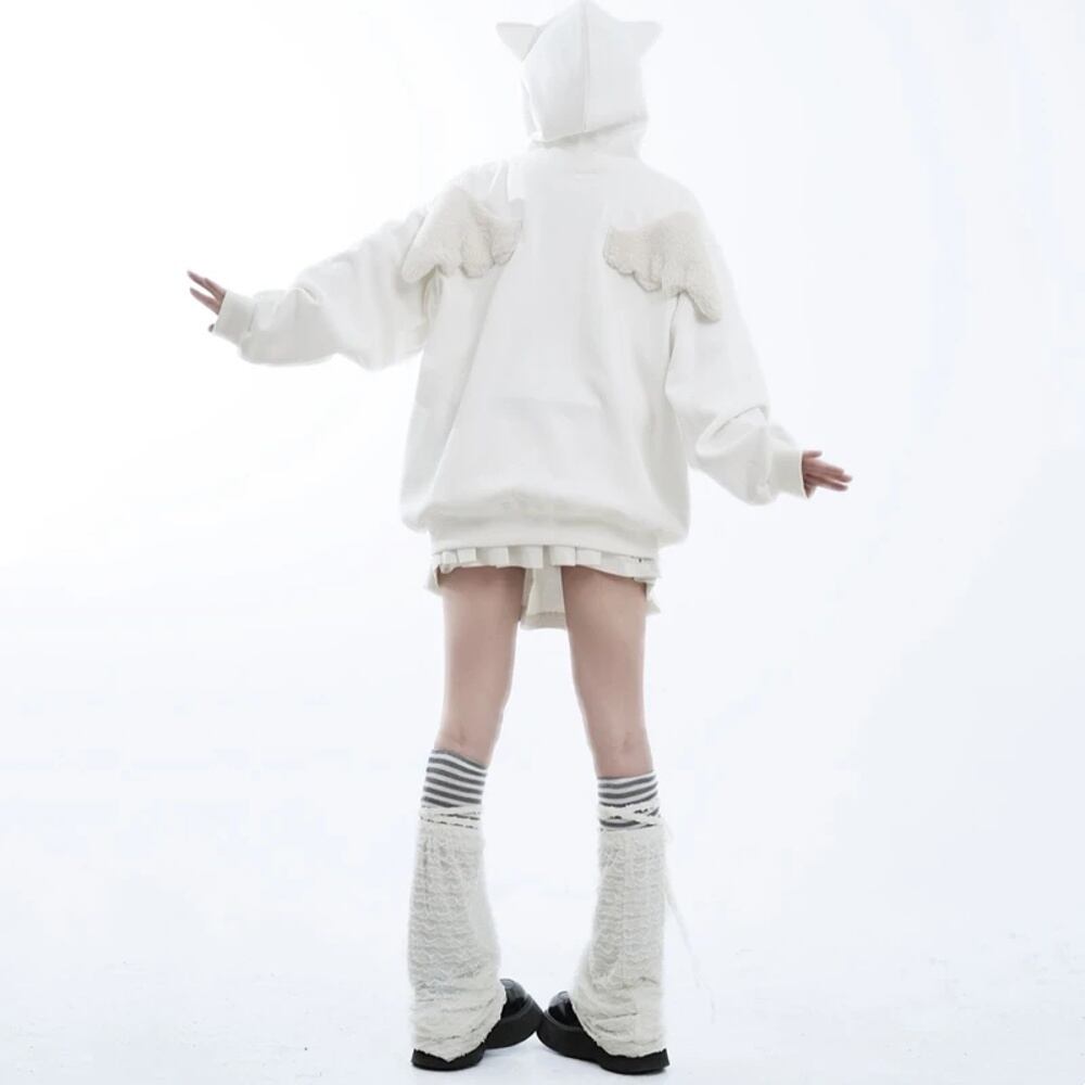 女性のカワイイキャットイヤーフード付きスウェットシャツ、ぬいぐるみエンジェルウィングジップアップフーディー、ハロウィーンパーティー服、若い女の子、y2k、秋 パーカー ジャージ y2k T240908165905_01