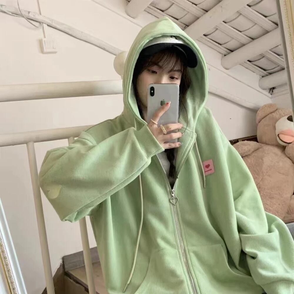 女性のための緑のフーディ,韓国の女性のファッション,愛する学生のための小さいサイズ,厚いセクション,カーディガン,美的,トップス パーカー ジャージ y2k T240908165925_04