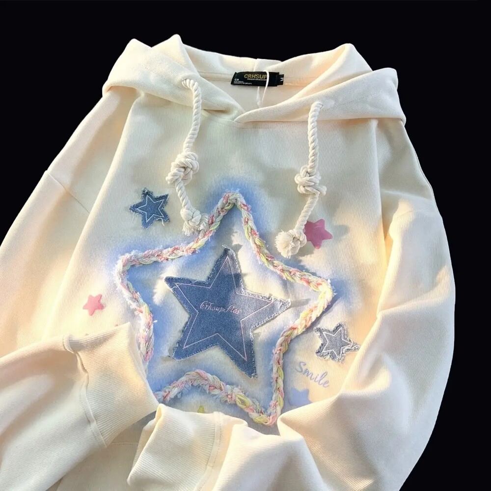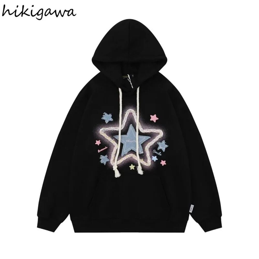 レディーススター刺embroideryオーバーサイズフーディー、原宿フード付きスウェットシャツ、カジュアルストリートウェア、10代の衣装、和風ファッション、y2k パーカー ジャージ y2k T240908170034_02