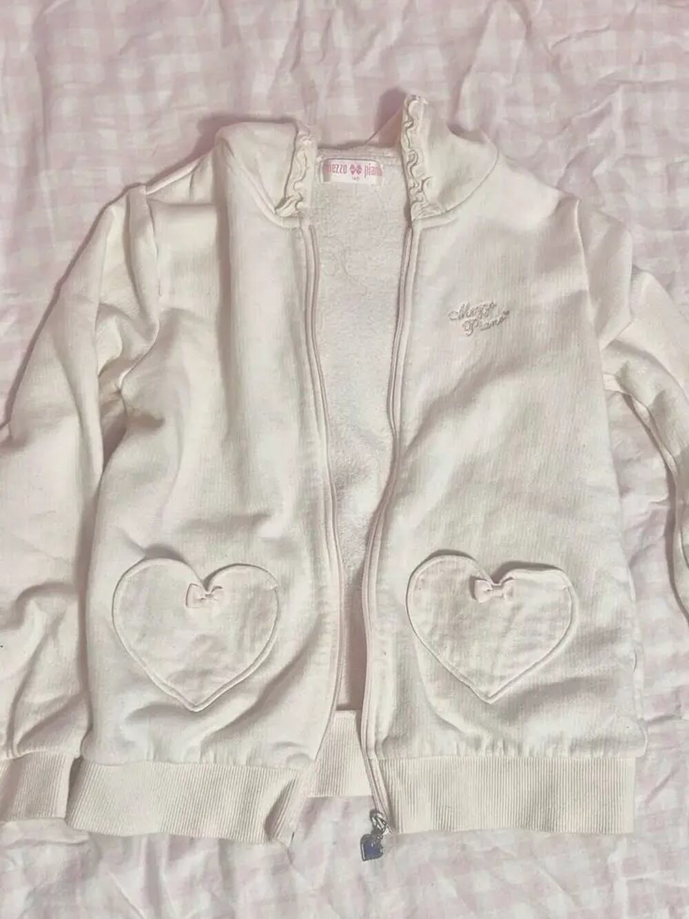女性用フード付きスウェットシャツ,ストリートウェア,カワイイ,白い愛,十分なジッパー,韓国の甘い女の子,90年代のヴィンテージ,長袖,Y2K-Cute パーカー ジャージ y2k T240908170043_01