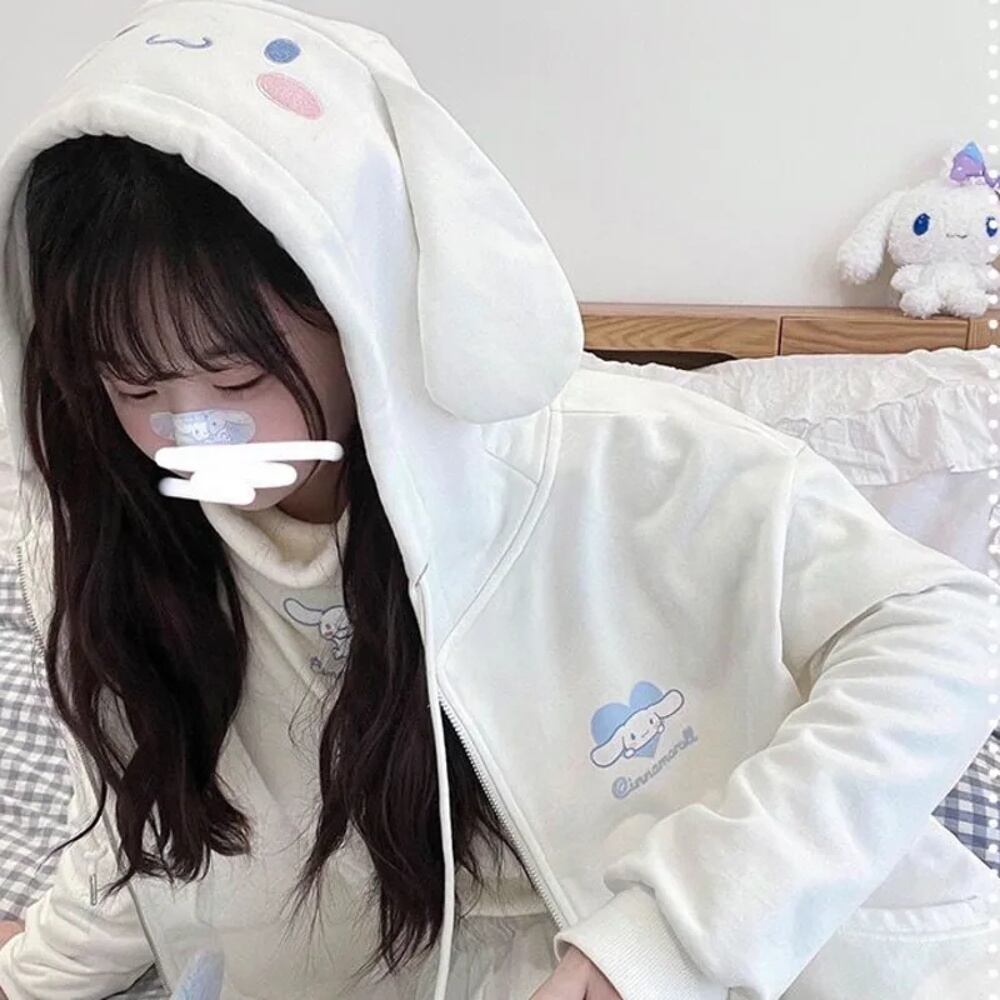 サンリオクロミシンナモロールメロディー女性用パーカー、カワイイスウィートジッパートップス、薄いコットンフード付きスウェットシャツ、y2k服 パーカー ジャージ y2k T240908170144_01