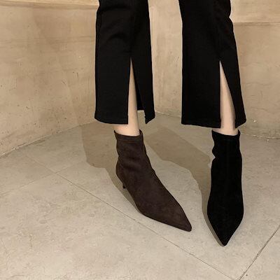秋冬ファッション レディースショートブーツ 美脚 身長アップ 快適 スエード 黒 スエード調靴 歩きやすい フラットシューズ 滑り止め 太ヒール ショット丈ブーツ ーシューズ ブーツ 靴