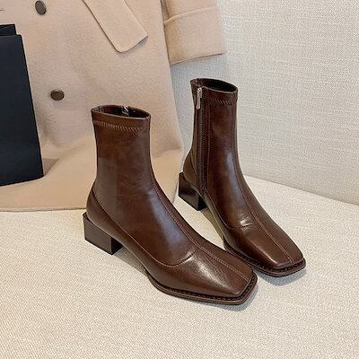 秋冬ファッション レディースショートブーツ シューズ 加絨保暖靴 ショット丈ブーツ ヒール 靴 ヴィーガンレザー 黒 防寒 ミドルカットョート ブーツ ミドルヒール 太ヒール ブーツ 靴
