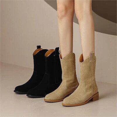 秋冬ファッション レディースショートブーツ 防寒 加絨保暖靴 ショットブーツ スエード 黒 スエード調靴 フラットシューズ シューズ 美脚 靴 厚底シューズ ブーツ 靴