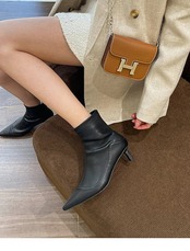 秋冬ファッション レディースショートブーツ ハイヒール 防寒 おしゃれ 美脚 加絨保暖靴 ピンヒール ポインテッドトゥ ショットブーツ ミドルカット ブーツ 靴