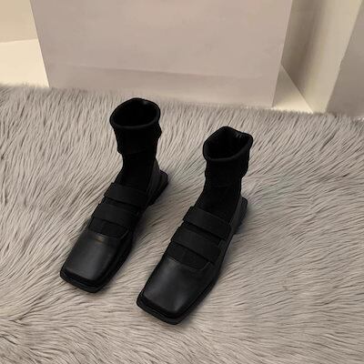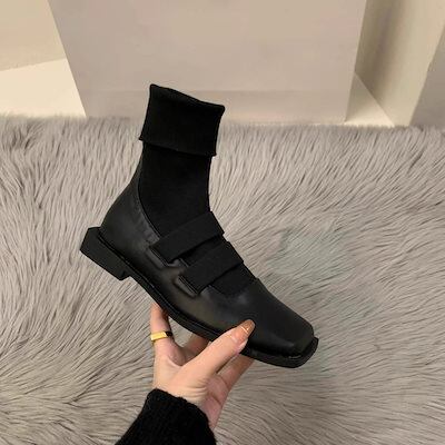 秋冬ファッション レディースショートブーツ 秋冬 スクエアトゥ 太め ローヒール ブーツ 小さめ 名入れ ソックスブーツ ブーツ 靴