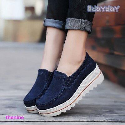 レディースシューズ 厚底スニーカー ローファー 看護師 婦人靴 スエード スリッポン 身長アップ 美脚 軽量 通勤 防滑 オフィス 疲れない