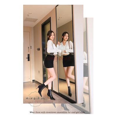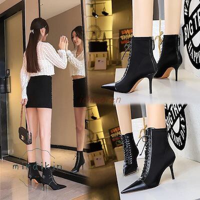 【3日以内出荷】ブーツ レディース ショートブーツ 履きやすい 痛くない 8cmヒール 22-26.5cm ピンヒール レースアップ 黒 ブラック 歩きやすい 通勤用 仕事 美脚パンプス