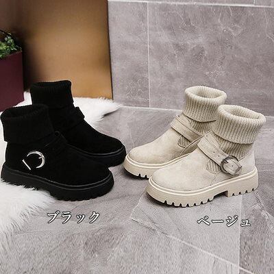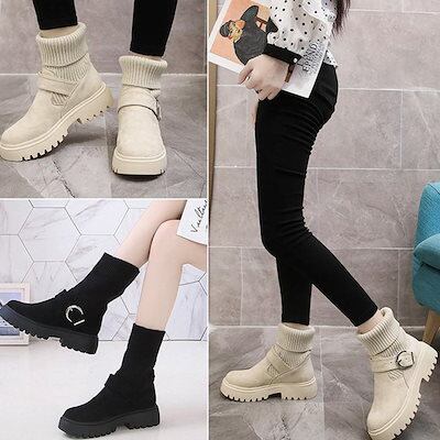 【3日以内出荷】ソックス風 ショートブーツ レディース 2wayニットブーツ バックルベルト 厚底ブーツ 歩きやすい ハイカット ブーツ おしゃれ